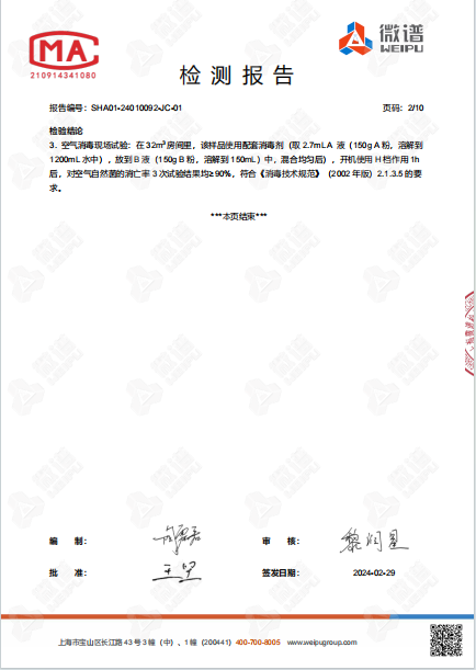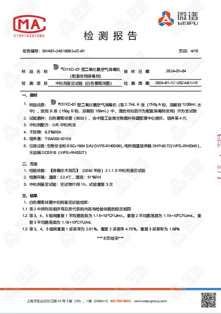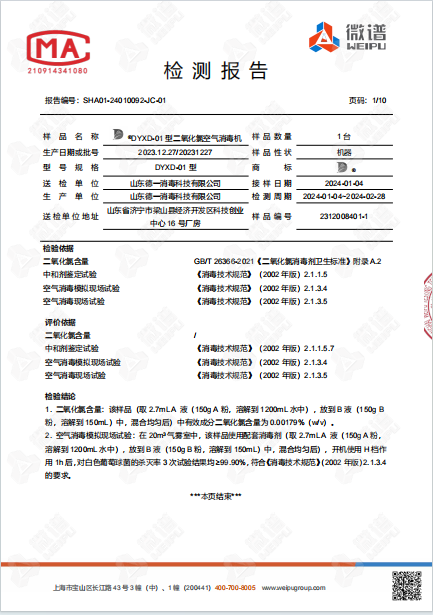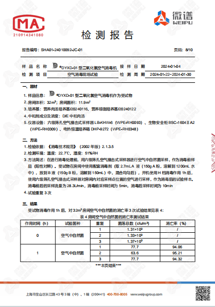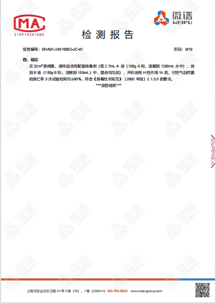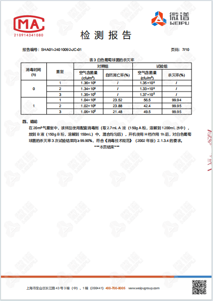 空氣消毒機(jī)檢測報告